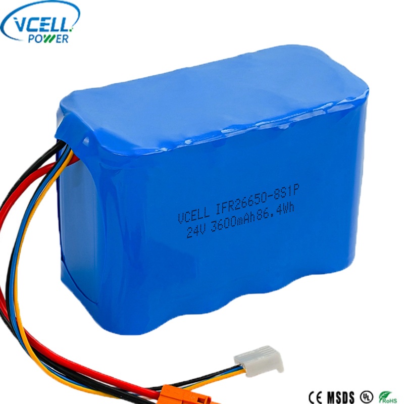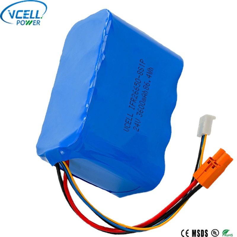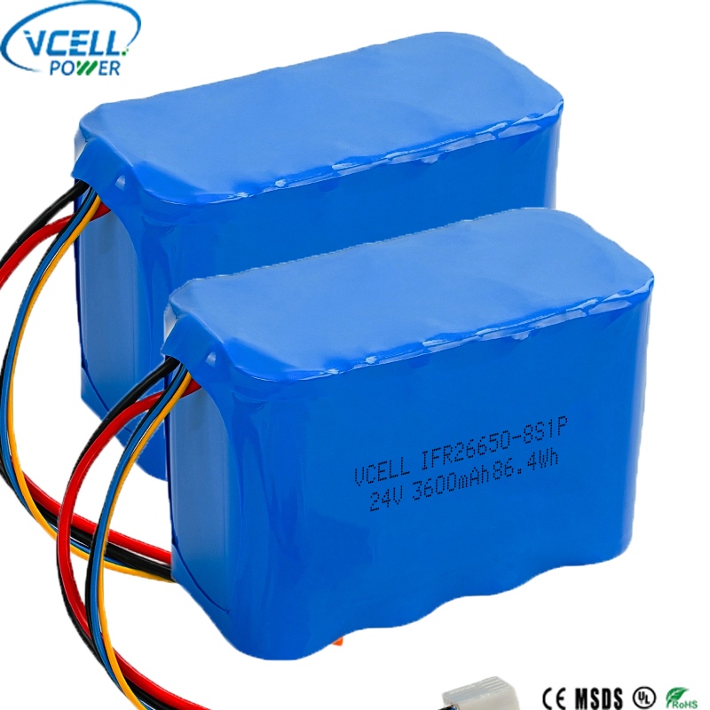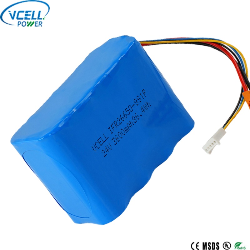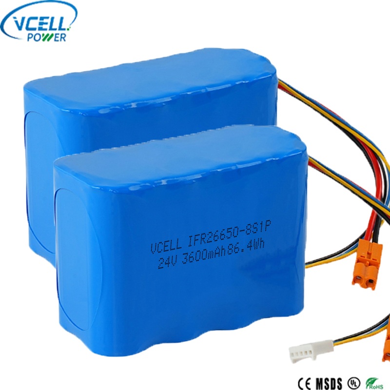 Cette batterie rechargeable 24 V 3600 mAh 26650 LiFePO4 est une batterie 24 V haute performance du fabricant de batteries Vcell Power en Chine. Il présente une conception compacte 8S1P avec une capacité de 3 600 mAh et une puissance de sortie d’énergie de 86,4 Wh. Construit avec des cellules 26650 durables, la batterie rechargeable VCELL 24 V 3600 mAh 26650 LiFePO4 offre une durée de vie de plus de 2 500 cycles et une excellente sécurité thermique. Bienvenue à l'enquête !