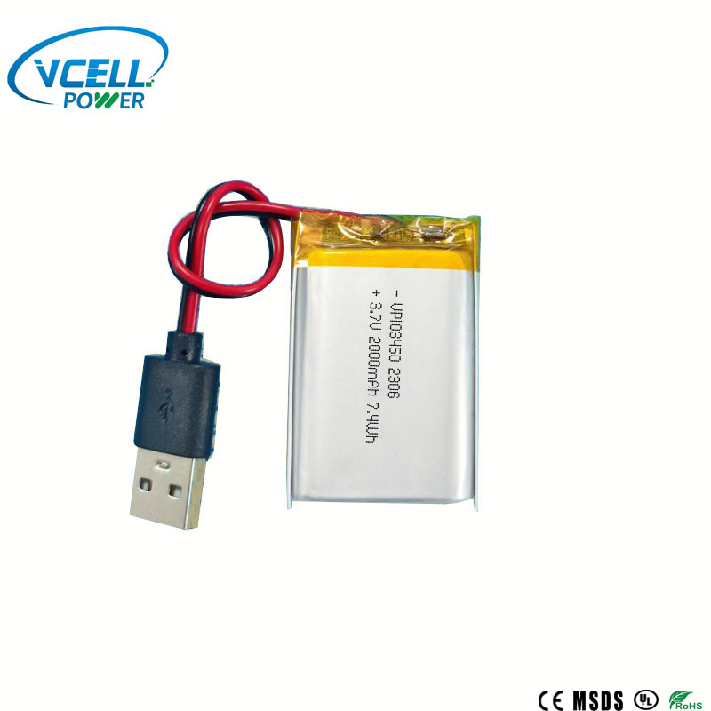 La batterie polymère 3,7 V 2000 mAh 103450 Li est basée sur un matériau cellulaire de haute qualité, a une capacité suffisante et une assurance qualité.